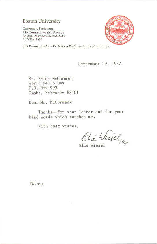 As a global event World Hello Day joins local participation in a global expression of peace. 31 winners of the Nobel Peace Prize are among the people who have realized World Hello Day's value as an instrument for preserving peace and as an occasion that makes it possible for anyone in the world to contribute to the process of creating peace.